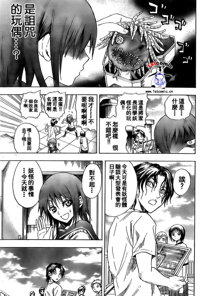 放学的铃声响起,同学们陆陆续续的走出教室。清十字清继和岛欢快地奔向足球场,他们要大干一番。陆生拖着两个大垃圾桶向门外走去,今天该他值日了。少了团长,但怪奇侦探团的少女们还是被花开院柚罗带到社团常用地天台去了,她要教她们禹步,好让她们在遇到妖怪的时候能够逃开。