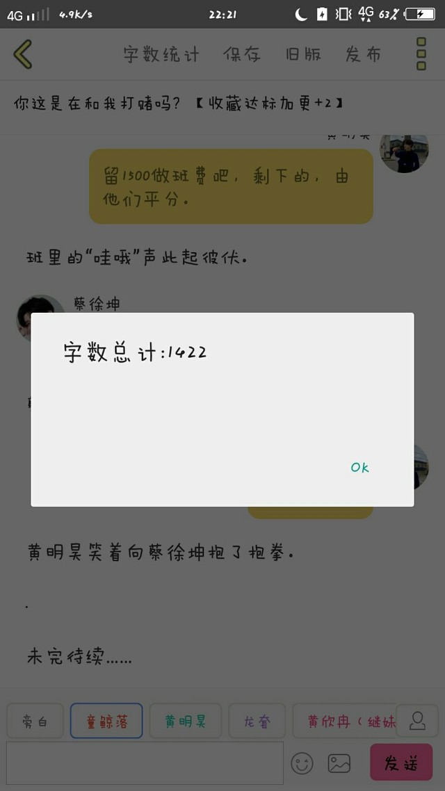 黄明昊留1500做班费吧,剩下的,由他们平分。