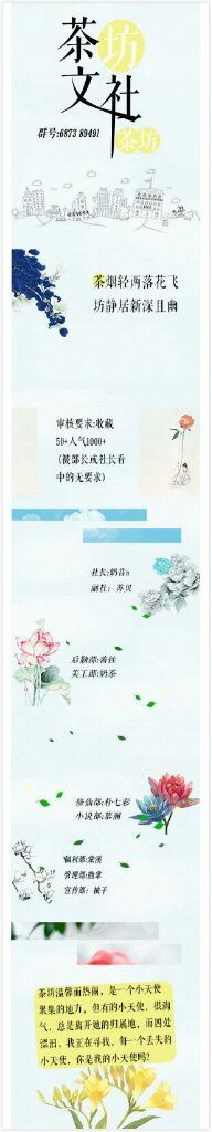 奶昔“有好消息啦!奶昔的文社茶坊文社开张啦~啪啪啪啪,鼓掌👏,欢迎加入茶坊审核群🍃,群号码:687389491 ,这是群号,欢迎还没有文社的小可爱们进茶坊~从前,天宫上有许多许多可爱的小天使,她们是丘比特的小天使,也是天堂老人的小天使,小天使们聚集的地方,小天使们喜欢叫它为茶坊,因为那里充满了温馨与热闹。某天,有很多小天使失踪不见了,茶坊的主人很着急,她到处寻找她丢死的小天使,有一天,她看到了她的小天使,她笑了,她对着小天使说,你愿意当我的小天使吗?你是我的小天使吗?”