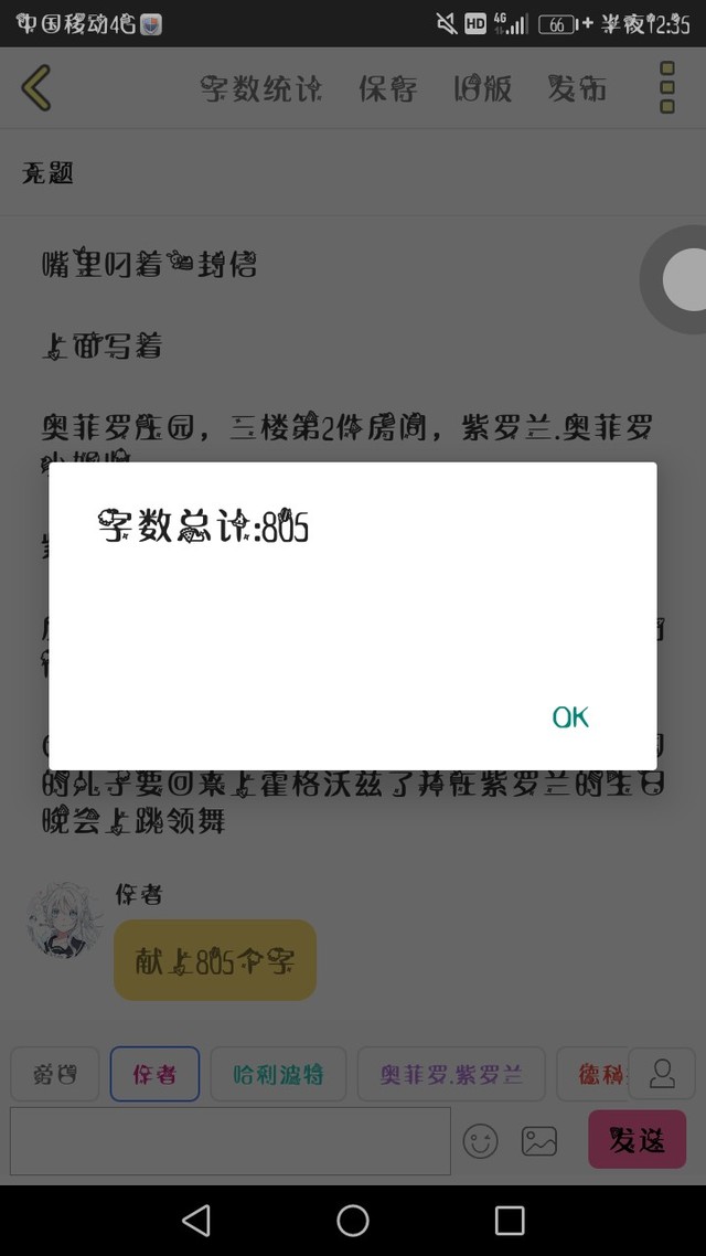 作者献上805个字