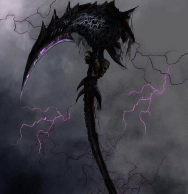 霍雨浩的手上突然出现了一把黑色的镰刀,散发出非常恐怖的死亡气息。