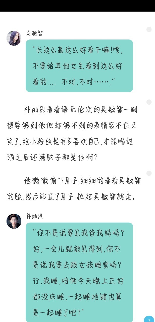 吴敏智“朴灿烈你别闹了好不好,你这分身术弄得我头晕烟花的”