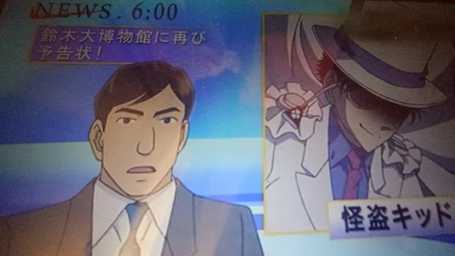 毛利兰就是啊,基德发出了预告信,表明这次他又想要偷铃木顾问的宝石了,现在电视新闻正在播这个消息