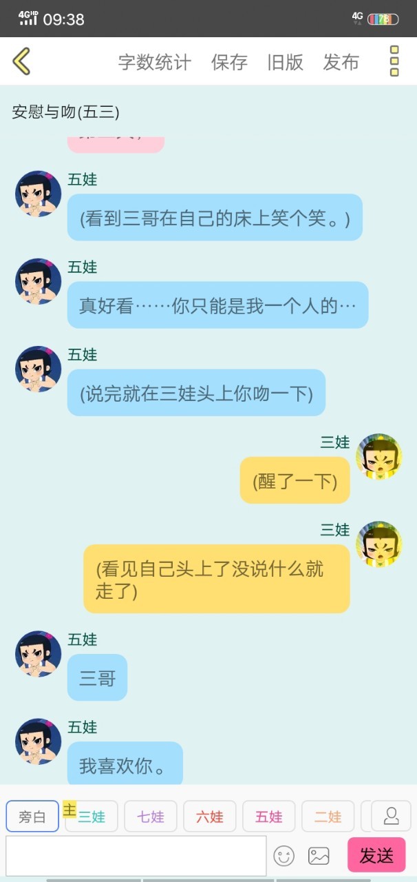 六娃:忠华三哥,‘‘为什么……三哥,你就真的那么喜欢五哥吗?难道我得不到你的喜欢吗?算了,既然得不到那就……’’