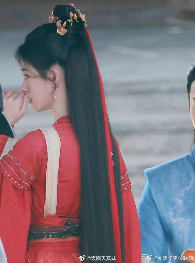 女子如瀑黑发被风吹起,鲜红衣角也随风飘扬,可谓英姿飒爽,美艳无双。