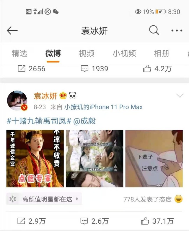 然后又找出手机里的另一张图“下辈子注意点”然后艾特了成毅,发送。