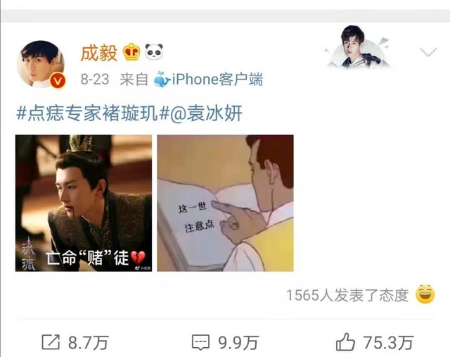 成毅的手机立马收到袁冰妍艾特他的信息。看了袁冰妍的微博,然后他立马编辑了一条“点痣专家褚璇玑”配上信王和“这一世注意点”的图片艾特了袁冰妍。