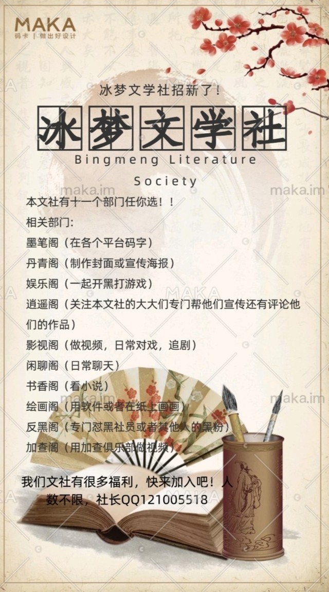 作者这是我们文社的宣传海报,要加入的,看看这个,然后加我好友