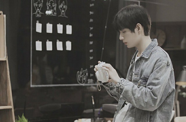 没想到刚出门就遇到了一个忧郁男青年,靠在墙上,脸倒是还挺帅的。