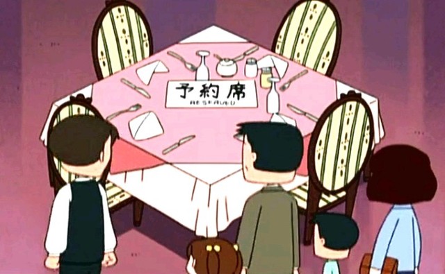 就在餐厅前排起了长队,要排队2个多小时!然后小丸子一眼相中的空座,但是有人预约。樱家集体给予注目礼。