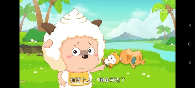 此时的喜美二人赶紧来帮助懒羊羊,只不过,当时用力太大,美羊羊的那边或许是太用力了吧,美羊羊差点摔下去,幸亏喜羊羊及时拉住了美羊羊。可惜,我们的小懒被喂了一嘴狗粮。