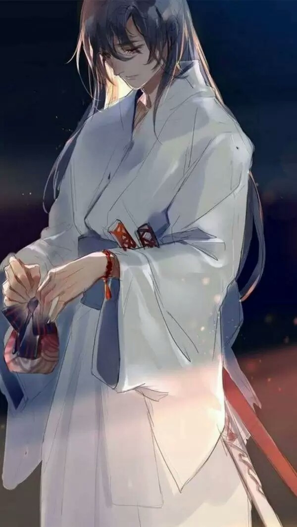 现在的青羽五官端正,银色的长发及腰,披沙在肩上,穿着一身白色的和服