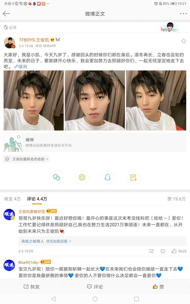 小凯微博九岁了!🎉🎉🎉肆意生长,勇敢去闯,彼此陪伴一同去更美的远方,未来也要继续互相照顾,小螃蟹一直在你身后,从开始到末来,只为王俊凯。💙