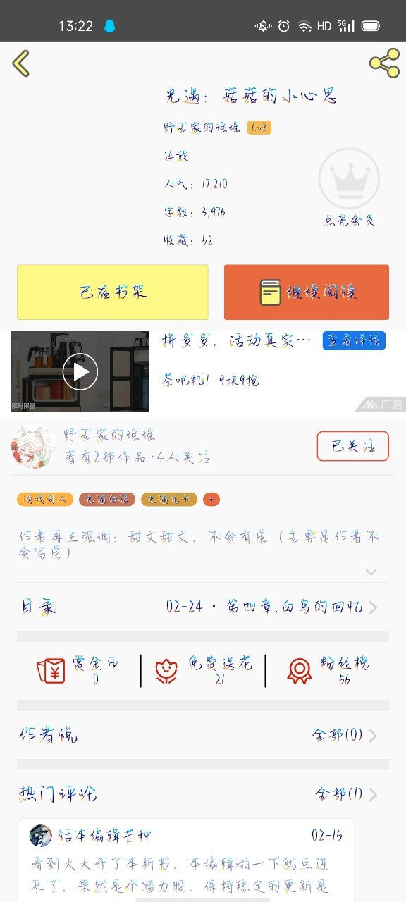 作者大大可能会更新慢点
