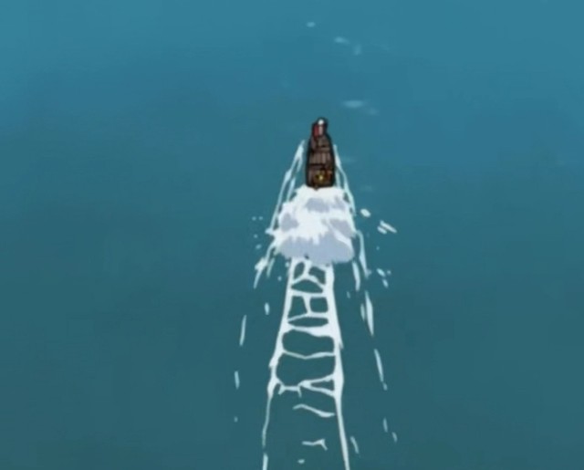 焰蓝影走到船尾,把螺旋丸往水里一推