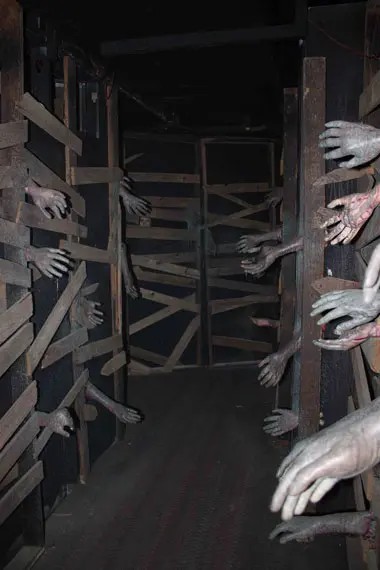 万圣节的鬼屋越往里走,灯光越暗