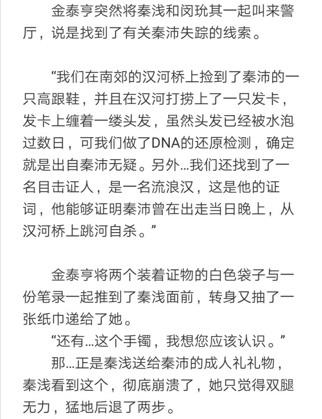 第8⃣章,秦沛只是失踪,并且尸骨未寒,警厅只是通过一些物件推断秦沛死亡,为后来秦沛并没有死做铺垫。