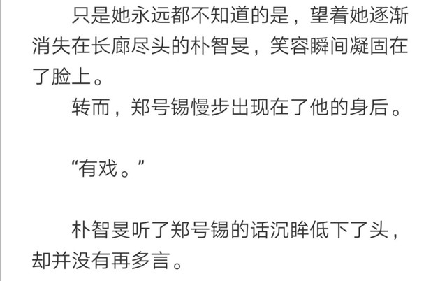 第2⃣9⃣章,朴智旻与秦浅的初次后,他收到了郑号锡的短信,也是为了体现郑号锡并没有那么单纯,而且朴智旻其实是听郑号锡差遣的。