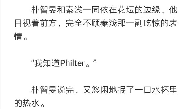 第2⃣8⃣章,朴智旻提到他知道Philter的存在,其实是田柾国无意中告诉了阿玉,阿玉告诉了金南俊,金南俊告诉了郑号锡,才传到了朴智旻的耳朵里。