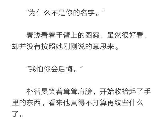 第4⃣0⃣章,秦浅深爱上了朴智旻,要纹他的名字在身上,朴智旻却并没有给他纹,因为他知道自己接近秦浅是计谋,两人没有结果。