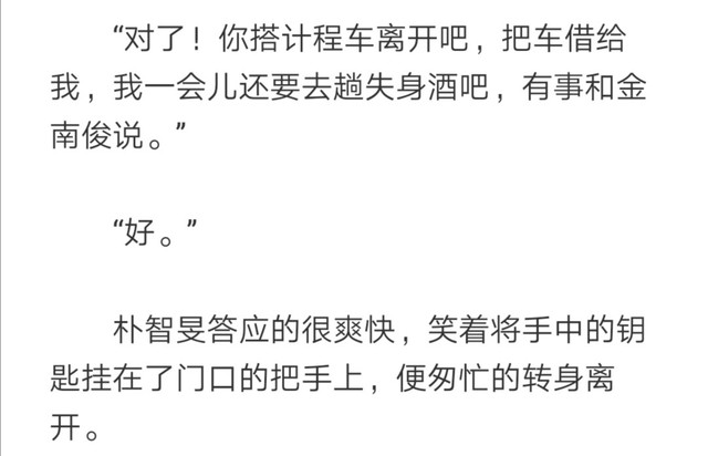 第5⃣9⃣章,朴智旻正与韩昊在一起时,因为秦浅说她怀孕了的电话需要离开,韩昊让朴智旻把车借给他,其实他听到了两人的电话。