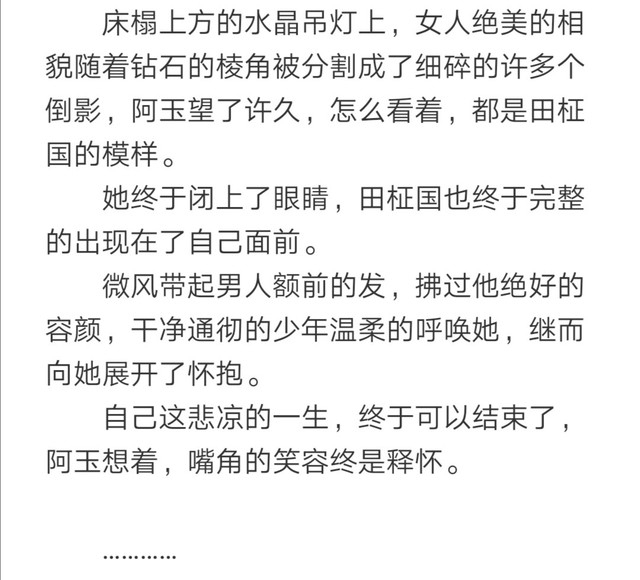 第1⃣0⃣0⃣章,阿玉的“死”我写的很开放,也是我的一个…嗯…“小心机”吧,我并没有明确的说阿玉已经死了,也是为了最后阿玉与田柾国的圆满埋下伏笔悬念。
