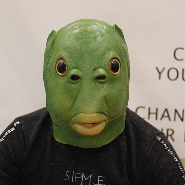 那是头上的确套了个东西,一个巨绿无比的的胖头鱼头套!