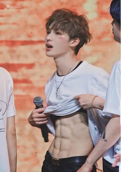 朱正廷看起来高高瘦瘦的,没想到衣服下的……东西,不简单啊,这腹肌真的让宋洛看得口水都要流出来了。