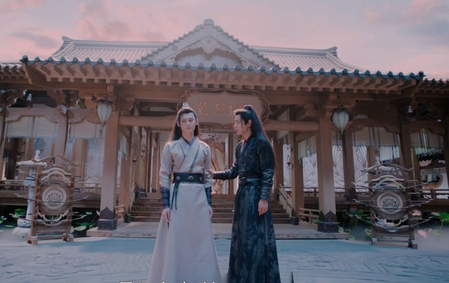 魏无羡追上江澄,拉住江澄,眼神看向江澄,江澄却没有看魏无羡。