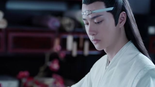 蓝忘机背着琴,一席白衣款款而来,走上台阶,到房门前后,轻轻的敲响房门。