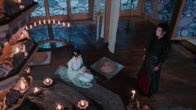 魏无羡来到祠堂,发现里面还亮着,走进去就看到江厌离在一旁擦拭牌位,魏无羡眼睛微微泛红,语气轻声喊到: “师姐”