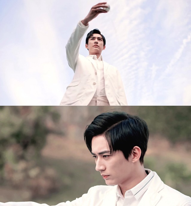解雨臣身穿一身白色西装,洒脱俊逸,俊朗不凡,他亲手洒下一杯水酒,然后将玉盒放进墓中,再命令手下盖棺,最后带着手下扬长而去。