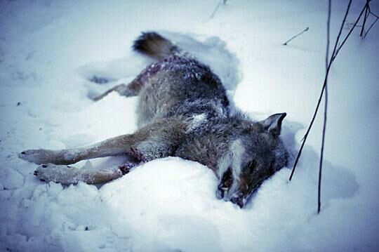 狼群见首领死了,十分伤心,也十分愤怒,向他们凶神恶煞地望着。