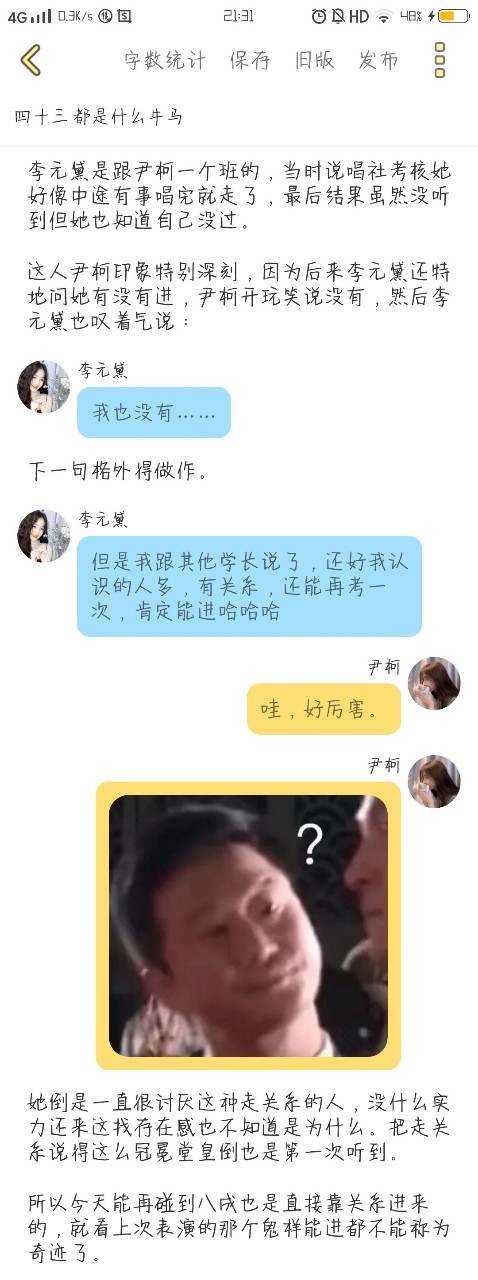 作者只不过她没有中途走听完了结果,因为我们班去的人不多,就我俩没进,她就很“自然”地问我了。我也是真的没进,当时选歌没选好还怯场笑死了。