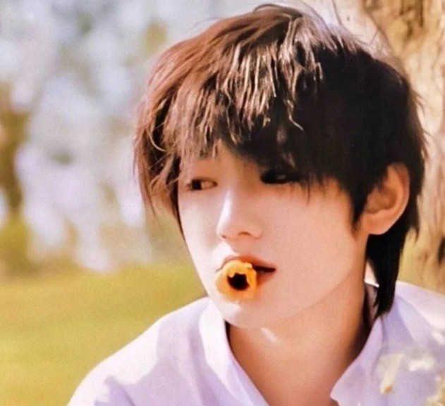 小漂亮嘴里叼着朵花,没有刘耀文的性感,反倒多了份纯洁和美好。