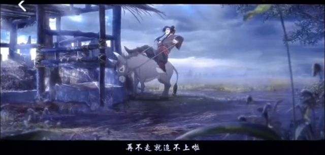 魏无羡在驴背上换种方式拉绳,但驴就是不动,还悠闲的吃着草