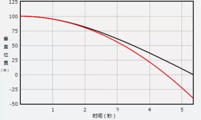 其中红色的是不计算空气阻力的轨迹,黑色的便是最终猫自由落体的轨迹.