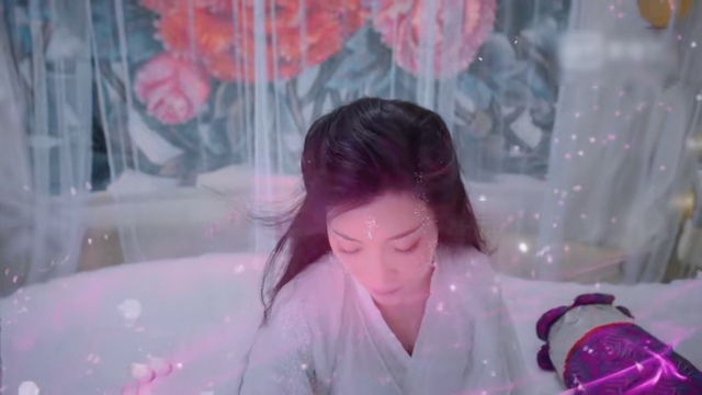 玉兰、杏花、茉莉、桂子、芙蓉、山茶、莲花、蔷薇……纱幔内半空中各色花朵竞相绽放又快速凋零。花瓣如雨瀑般倾泻而下,落英缤纷,瞬间将琉璃大殿淹没成一片花海,绮丽浩瀚却绝望无依。