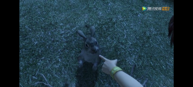 辗迟我在捡柴火中遇到一个兔子