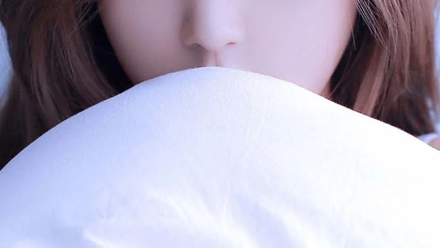 抱着抱枕,缩在门后面,缩成细细小小的一团
