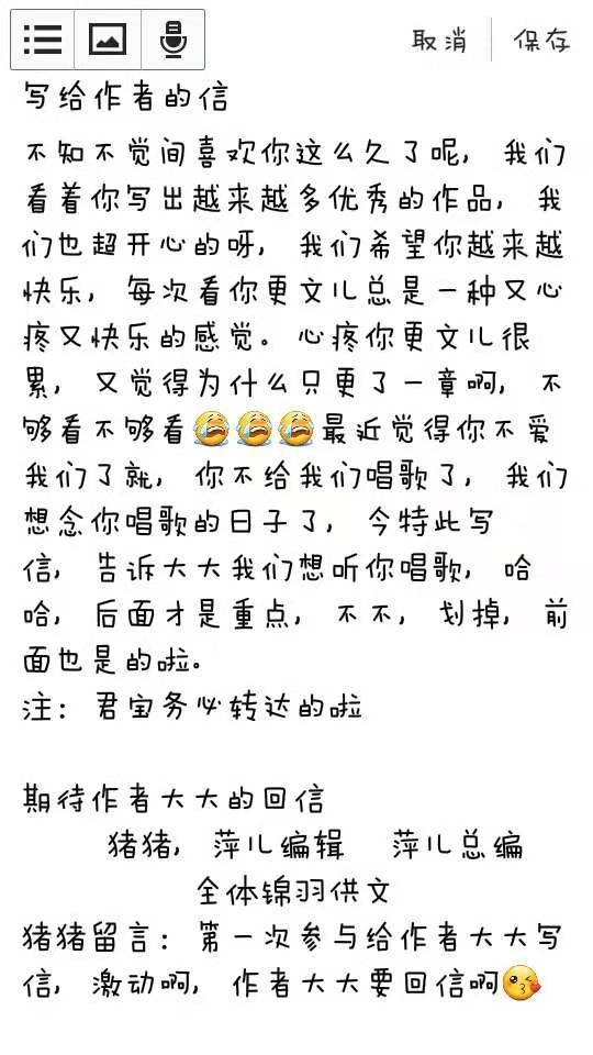 作者给各位小锦羽的回信