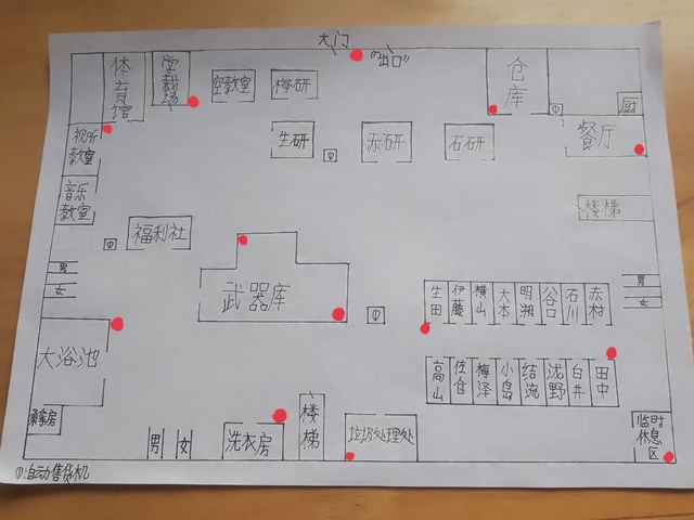 饭后的抽签环节选中了田中同学,她1个人去厨房刷碗,而其他人则围着餐桌聚集在一起,看着被谷口同学画了很多个红点的地图。