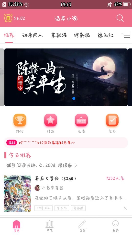 作者大大感谢各位读者大大的支持,我的书上今日推荐了