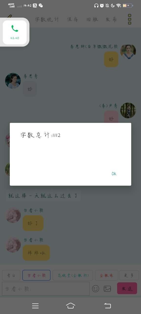 作者小颖1100个字来了