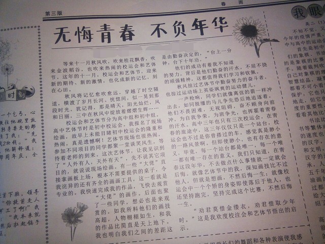 争取下一次完全靠我自己但是上学校的报纸。