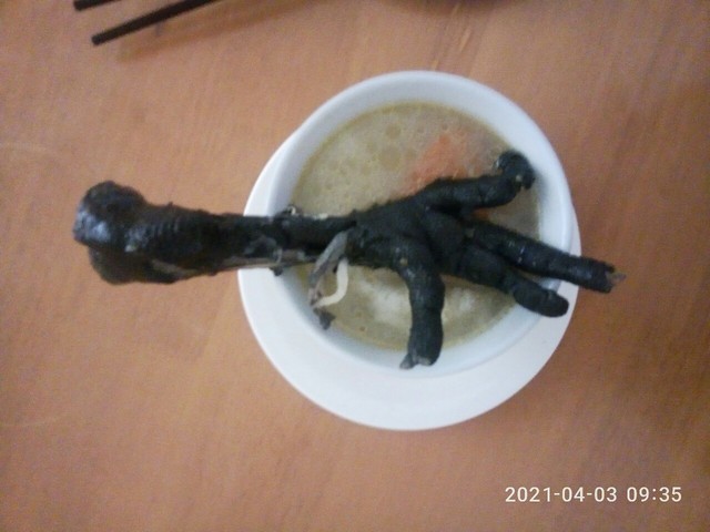 早上喝到妈妈煮的乌鸡汤了,还不错,还不错。