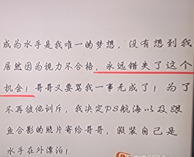 何副经理有,我在他床垫下面找到一张水手培训班的招贴启示后面有一段他自己的独白。
