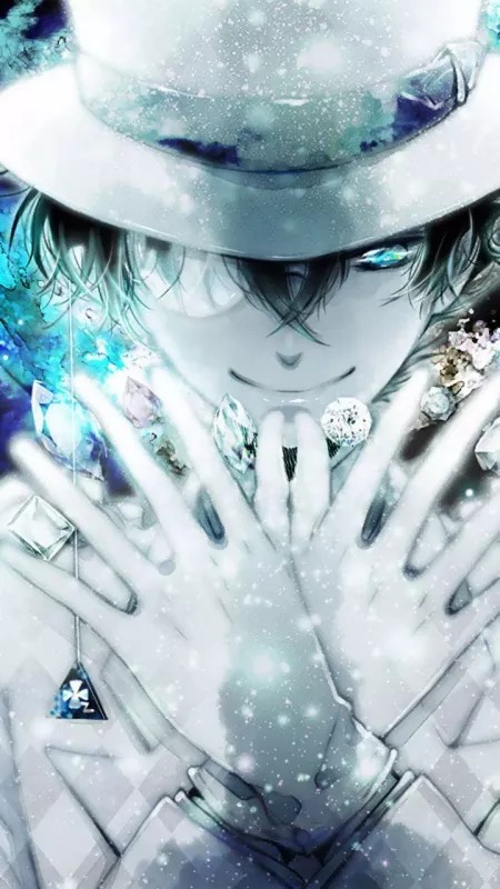 雪白肌肤丝缎般的华丽。眸子里是一望无际的苍蓝,属于最明媚的天空的颜色,闪着灼人的明亮。脸颊线条柔顺。冰蓝色的头发有着自然的起伏和弧度,散下来,令人百般想象指尖轻抚那些发丝的触感。