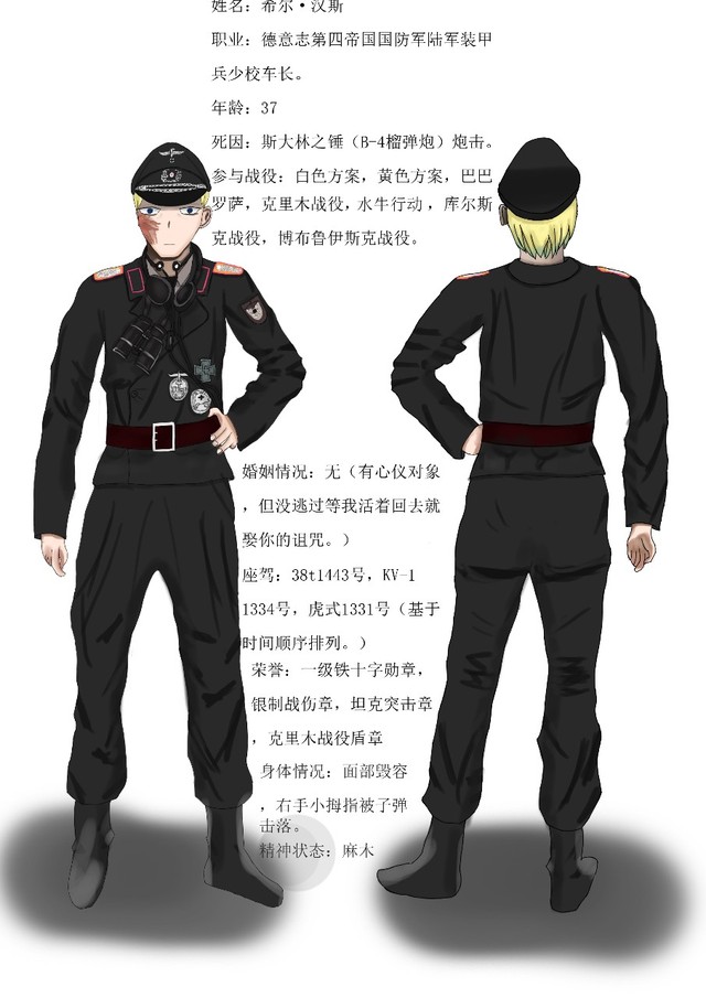 苏军的坦克击穿了kv-1的装甲,一枚炮弹破片从我的右脸划过,它削掉了我的右耳,同时让我的面部变得十分可怕。