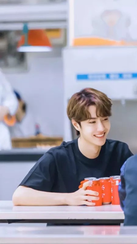 王一博身边的张杰喊了喊王一博,王一博侧头尊敬腼腆的一笑。